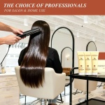PASO 2: Seca a un 80% el cabello. La poca humedad que quede en el cabello ayudará a deslizar el producto. Coloca producto KERATINE TREARMENT mechón a mechón desde la raíz hasta las puntas. Hasta dejar completamente cubierto el cabello.